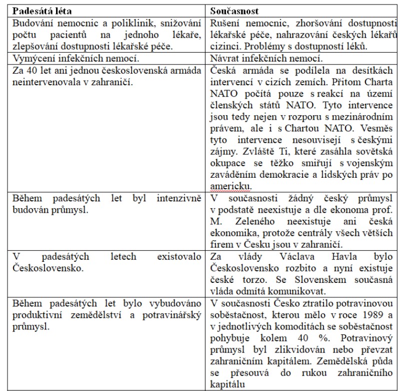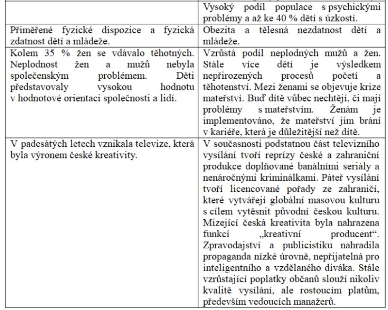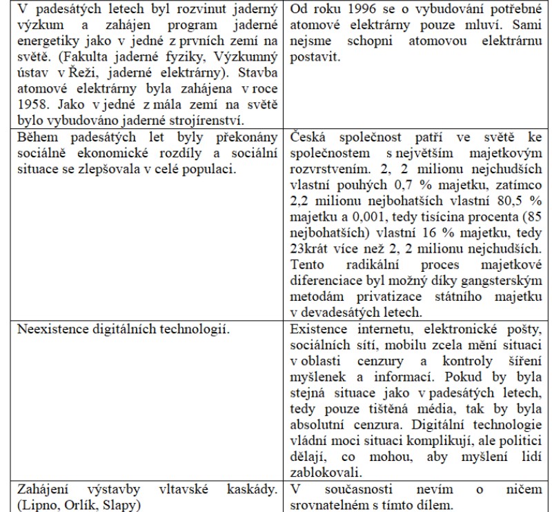 Srovnání společnosti padesátých let a současné společnosti