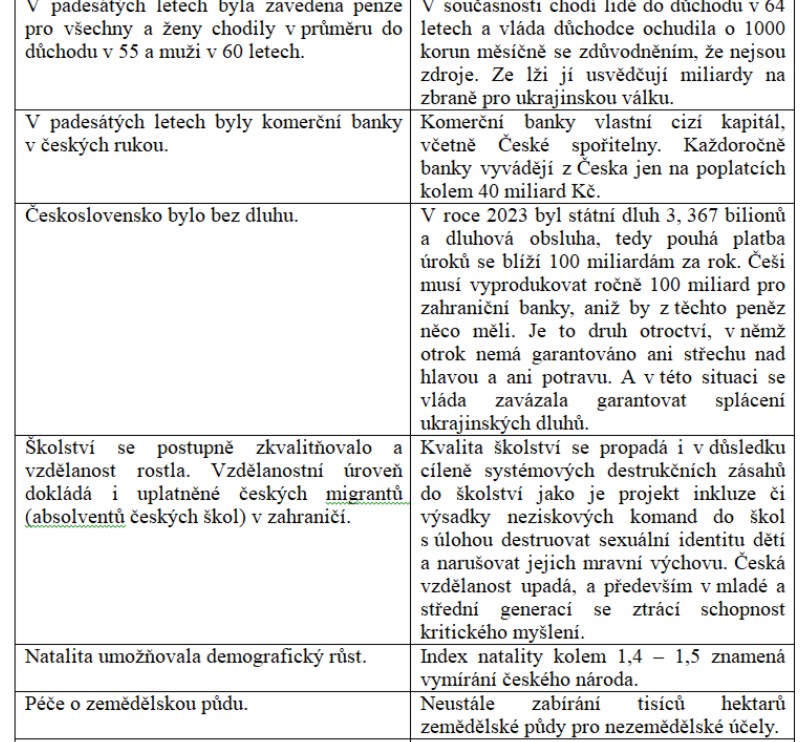 Jana Marková byla v listopadu malé dítě, takže předlistopadovou společnost z vlastní zkušenosti nezná a o společnosti padesátých let nemá ani dětské tušení. I když prokazuje vzácnou snahu kritickým myšlením pronikat dobovou propagandou, přeci jen nemohla zcela této propagandě uniknout. Současná propaganda z padesátých let selektivně vyzdvihuje pouze negativní jevy a procesy. Politické procesy, potlačená svoboda slova a političtí vězni. V tomto článku se nebudu věnovat této temné stránce historie padesátých let, je jí věnováno dost pozornosti. Instituce a organizace jako Paměť národa a ÚSTR byly založeny s cílem oživovat tuto historii. Za povšimnutí stojí, že mezi těmi, kteří se v současnosti chovají v rozporu se slušnou částí společnosti a slušnými mravy a jsou fanatickými antikomunisty, nacházíme jedince, jejichž rodiče a prarodiče byli aktéry či alespoň pomocníky toho nejhoršího ve stalinistické a normalizační společnosti. Páchali zlo s adorací Stalina na rtech a nyní jejich potomci šíří zlo v rouchu nenávisti vůči všemu ruskému a tlačí společnost do apokalyptické války s Ruskem. Na nich se ukazuje, že hlavní zdroj zla ve společnosti není v ideologii, ale v temných stránkách deviantních osobností, reprodukujících zlo v rodinách v dalších generacích. Ideologie je pouze zástěrkou, která jim legalizuje páchání zla. O některých rodinách jako nositelích dobového zla se to ve společnosti ví, ale u mnohých se to doposud neví a ÚSTR to rozhodně rozkrývat nebude. Bohužel, každá společnost, každá politická garnitura nechá tyto psychopaty a devianty páchat zlo, protože svou špinavou prací jim pomáhají udržet moc.