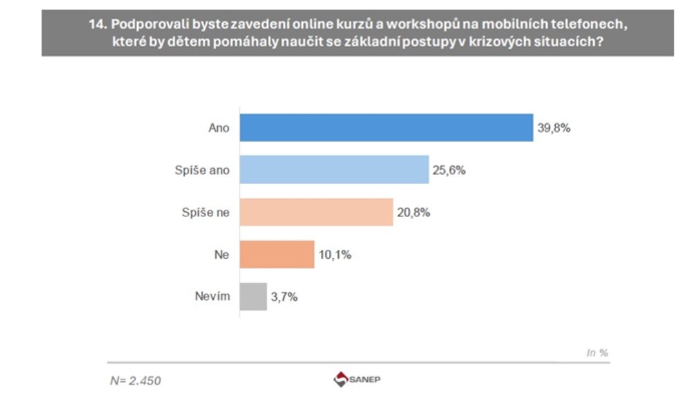 Dvě třetiny občanů se domnívají, že ke zlepšování schopností dětí řešit složité bezpečnostní situace by měla přispívat i školní výuka prostřednictvím mobilních aplikací. Kdybychom chtěli toto většinové přání prakticky zrealizovat, museli bychom vyřešit celou řadu souvisejících okolností a problémů. Mají dnes všechny děti k dispozici chytrý telefon? Jsou učitelé ochotni a schopni realizovat tyto moderní formy výuky? Je používání chytrých telefonů při vyučování centrálně dovoleno? Shodnou se odborníci z mnoha oborů na obsahu a formě takových aplikací? Atd., atd…
