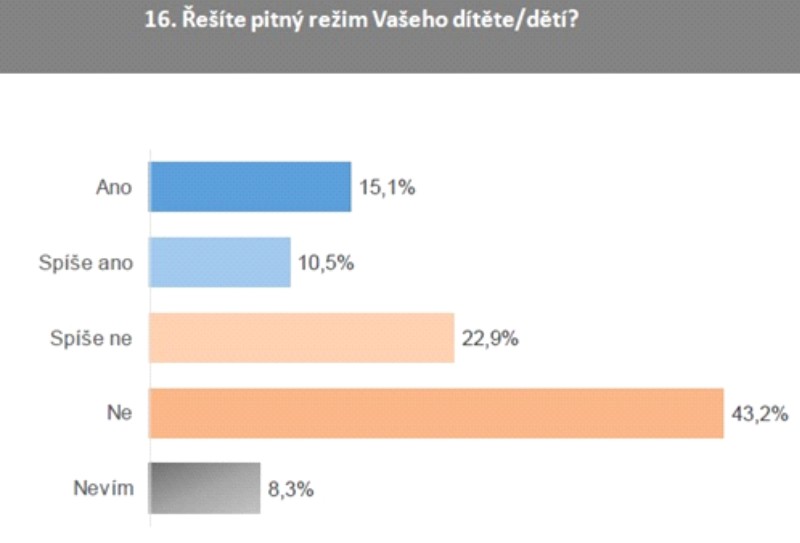 Skupina dětí, které pijí tzv. zdravotně nezávadné nápoje (24,8 %), až nápadně přesně koresponduje se skupinou rodičů, které se aktivně zajímají o pitný režim svých potomků (25,6 %). Těmto rodičům musíme zatleskat. Musím znovu zopakovat, že s největší pravděpodobností valná většina rodičů zná neblahé účinky dlouhodobé konzumace slazených nápojů, včetně ovocných, a zejména těch energetických. Ale převážná většina rodičů to neřeší, ať už z rozmanitých důvodů, k nimž jistě patří vlastní pohodlnost a nedůslednost či absence vlastního pozitivního příkladu. Ani v tomto případě nelze přijmout argument, že důvodem dětské konzumace nevhodných nápojů by mohly být malé ekonomické možnosti některých rodin. Je přece nasnadě, že právě ty nevhodné a škodlivé nápoje jsou výrazně dražší než ty zdravé.